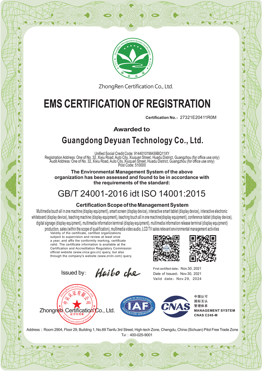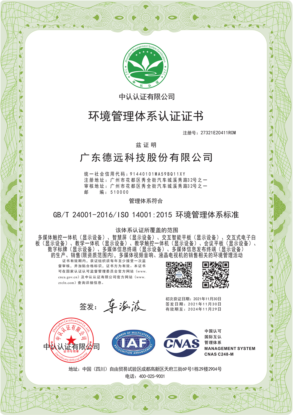 环境管理体统证书