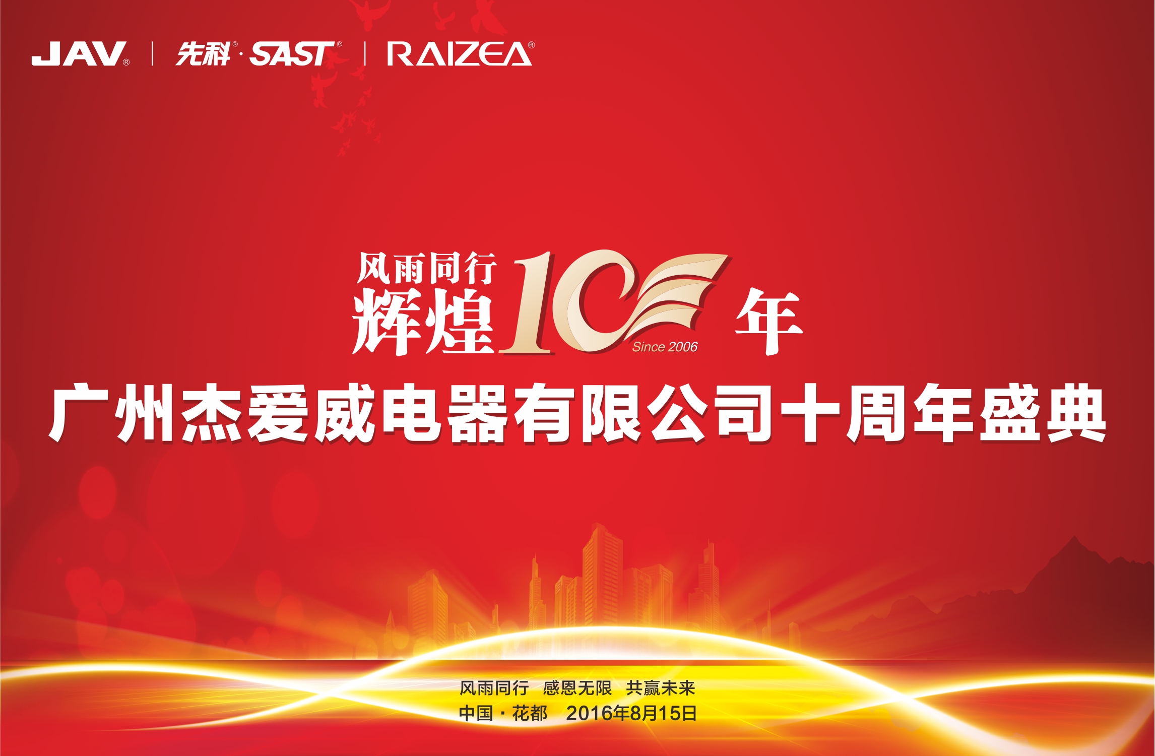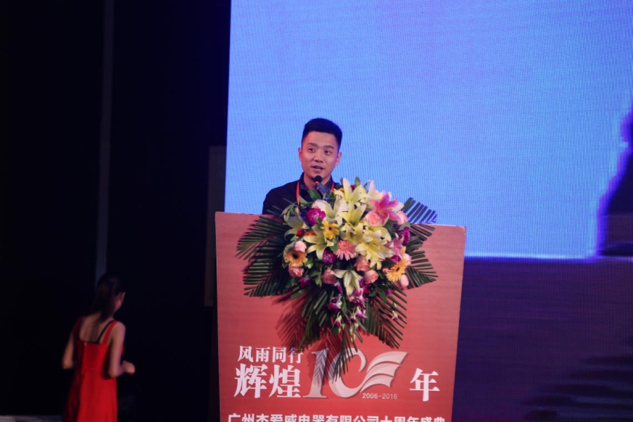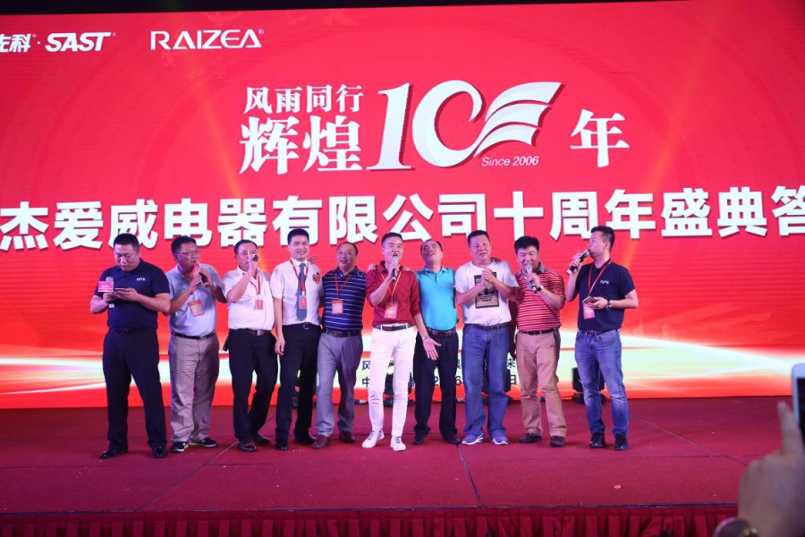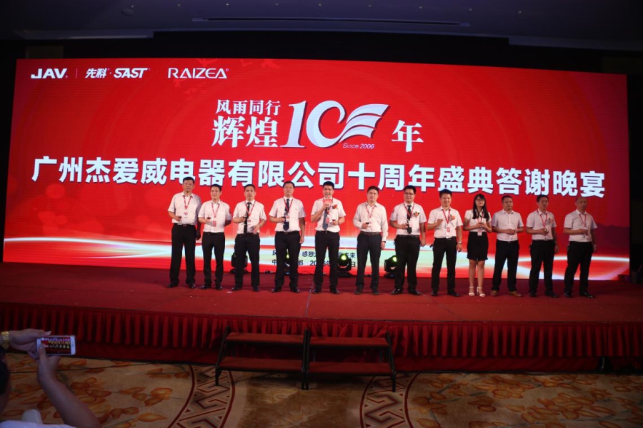 在杰爱威领导及员工上下一心团结的力量上,杰爱威在电器行业市场经历十载风雨,精心铸造行业品牌,创造行业佳绩。“风雨同行,辉煌10年”充分展现杰爱威人十年全心全意的付出,杰爱威在这隆重喜庆的日子里,用感恩的心情报答全体员工、代理商、供应商及各界朋友人士,让这美好的记忆烙在每一位杰爱威人、代理商、供应商及各界朋友们的心中,让这美好的一天成为杰爱威企业发展历程中的光辉一页。