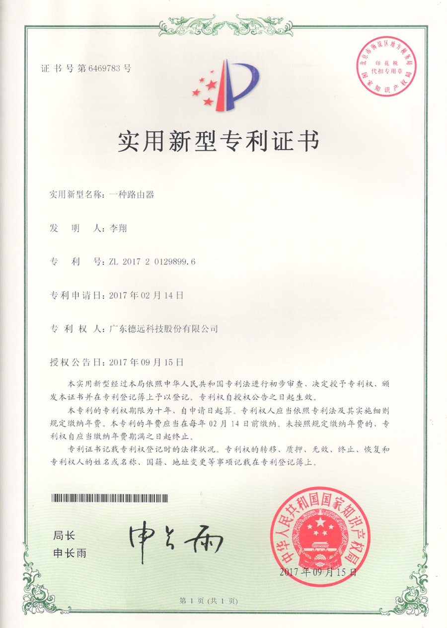 经国家知识产权局评定,云顶4008集团官网申报的“带有报警系统的机顶盒”、“路由器”、“电视机固定边条的螺丝槽位连接结构”、“网络机顶盒”、“电视机管型音箱”、“平板电视机的钢化玻璃边缘导棱角结构”、“电视机铝合金型材的拼装结构”7项研发荣获《实用新型专利证书》,一项“液晶音乐电视机HD820系列”荣获外观设计专利。这标志德远股份在研发创新方面又步入一个新台阶!
