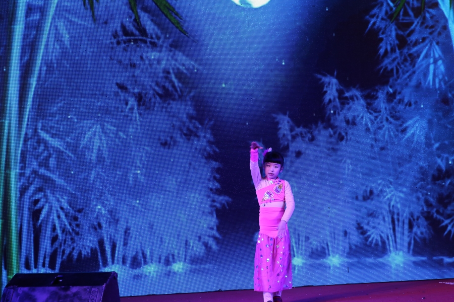 李璐彤小朋友给大家带来了傣族舞《月光下的凤尾竹》,跳出了浓浓的民族风情。