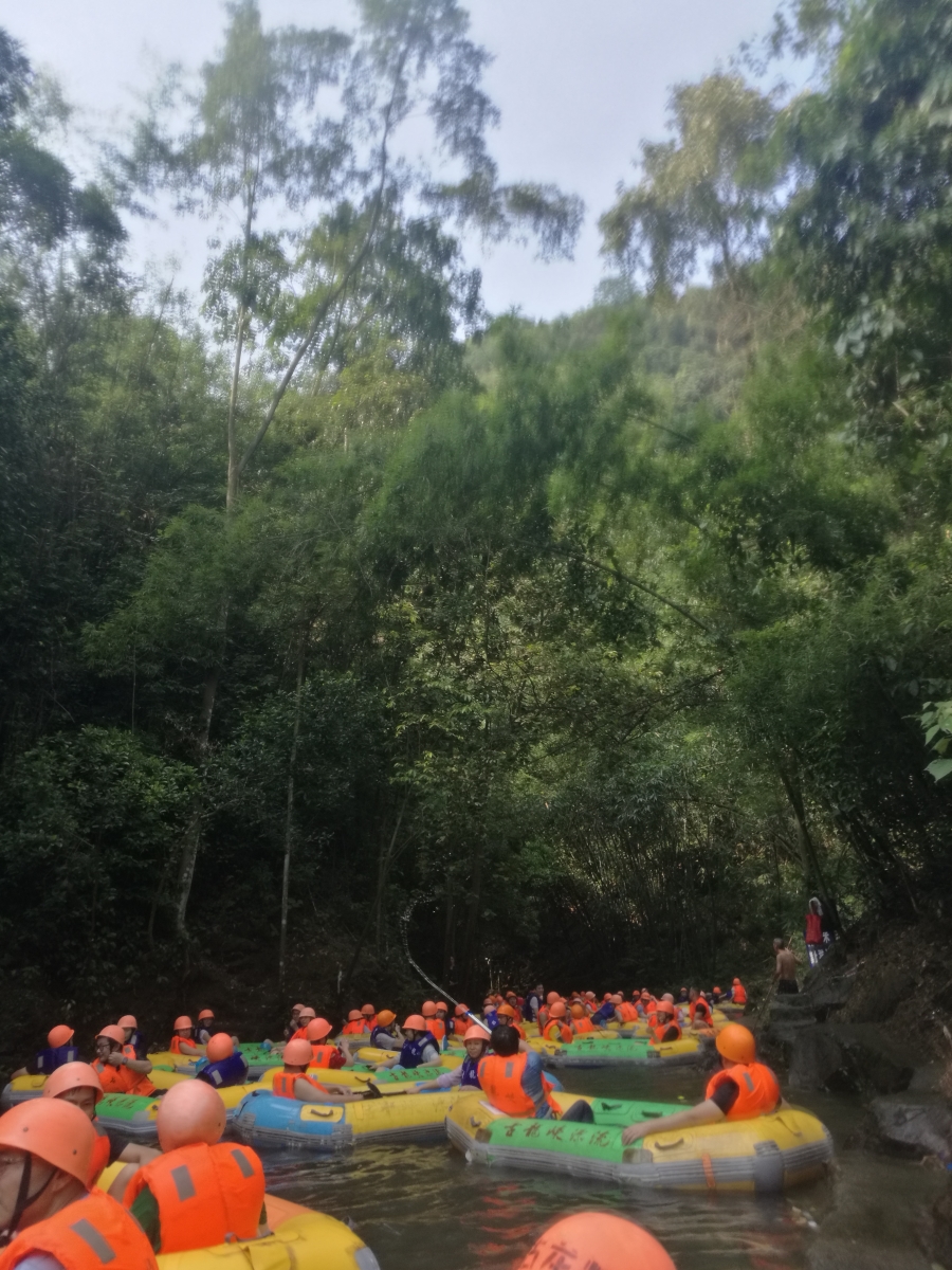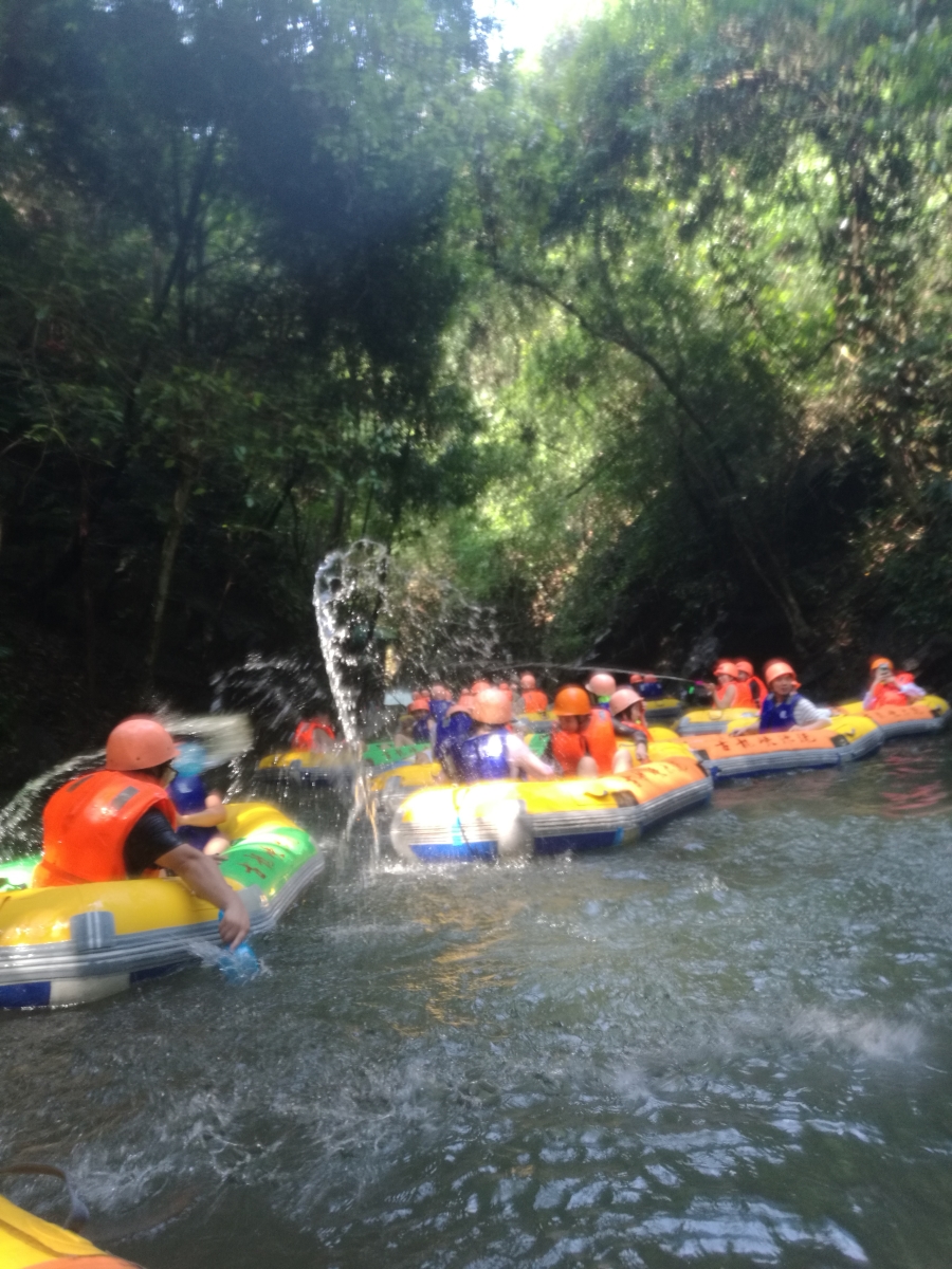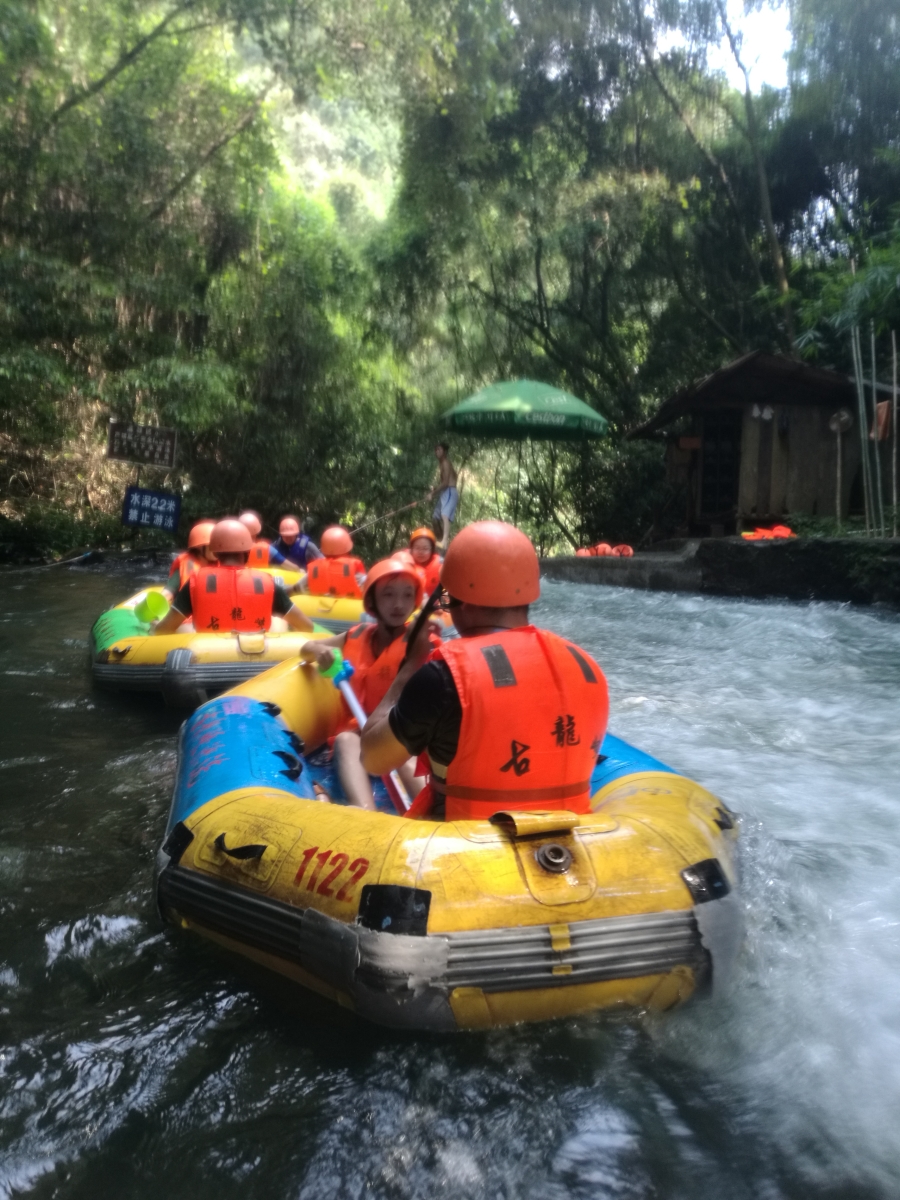 野炊结束之后,烈日高悬头顶,火热火热的。导游告诉我们,压轴大戏要上场了。家人们来到了清远的国家AAAA级旅游景区国际漂流赛场--------古龙峡漂流。这里人山人海,空气清新,见到清澈的流水,一股清爽的感觉顿时迎面扑来。