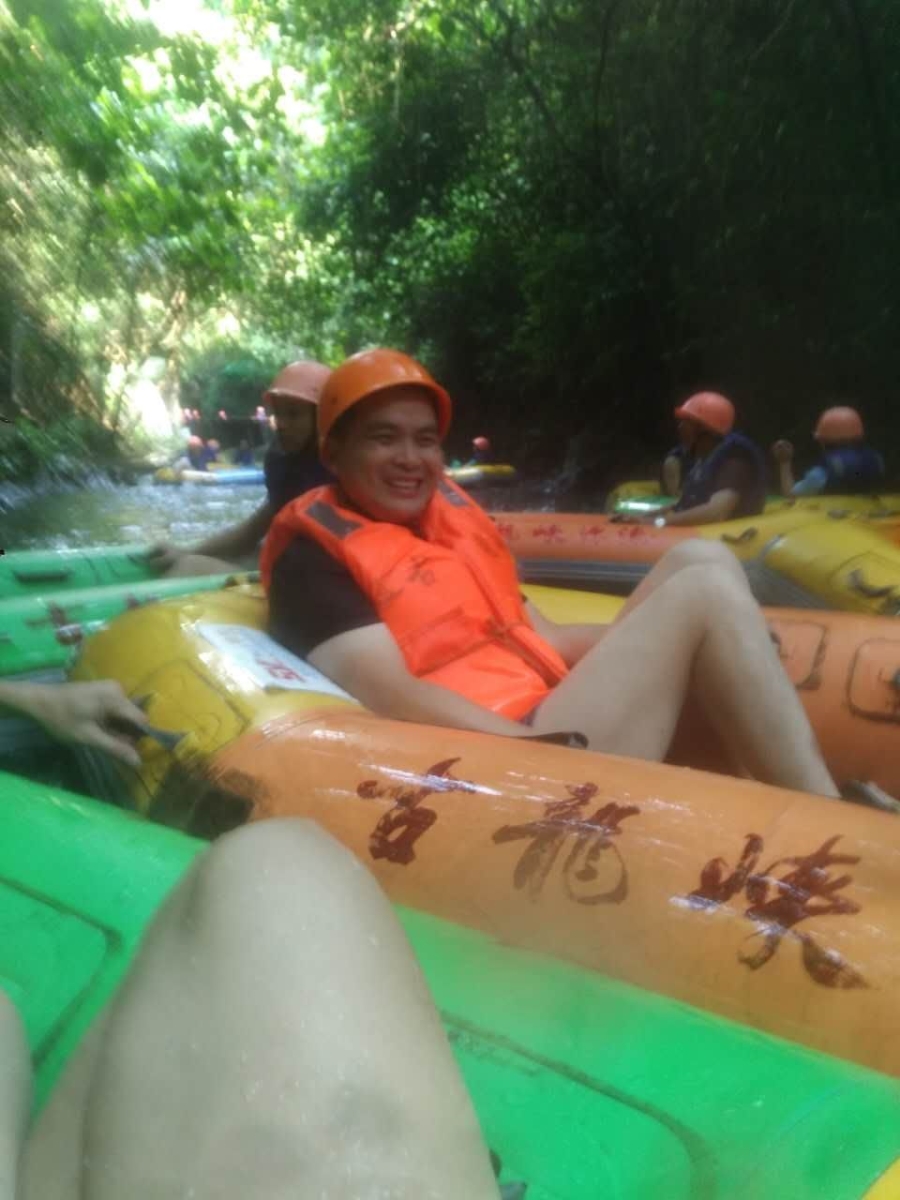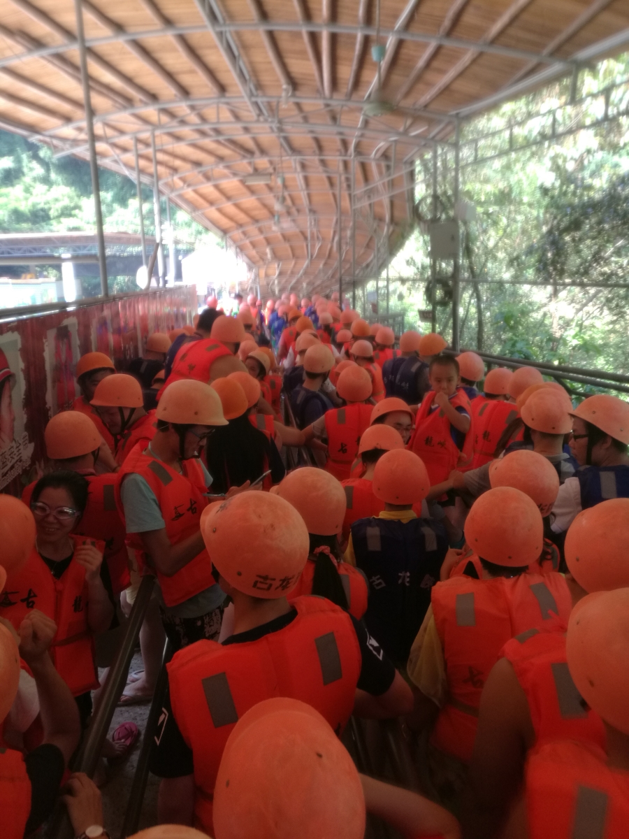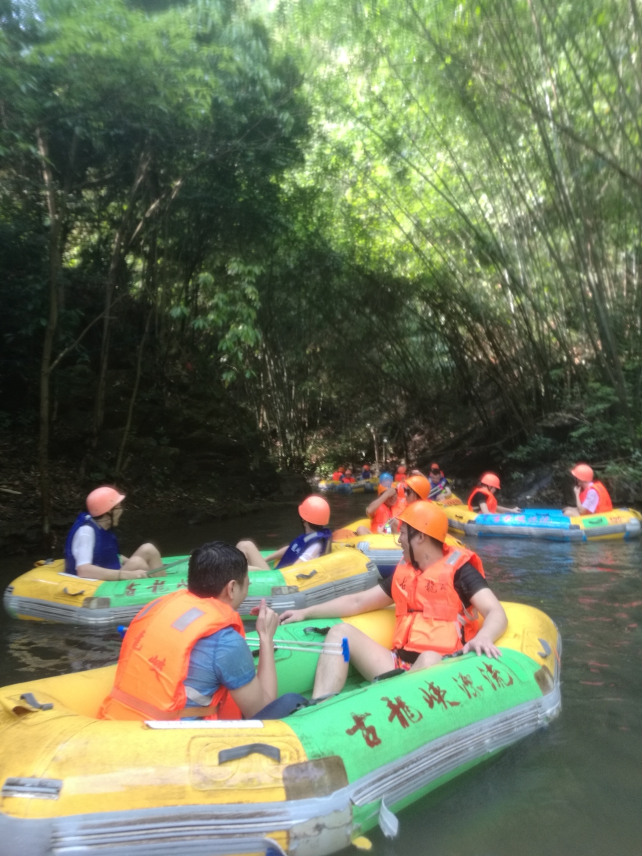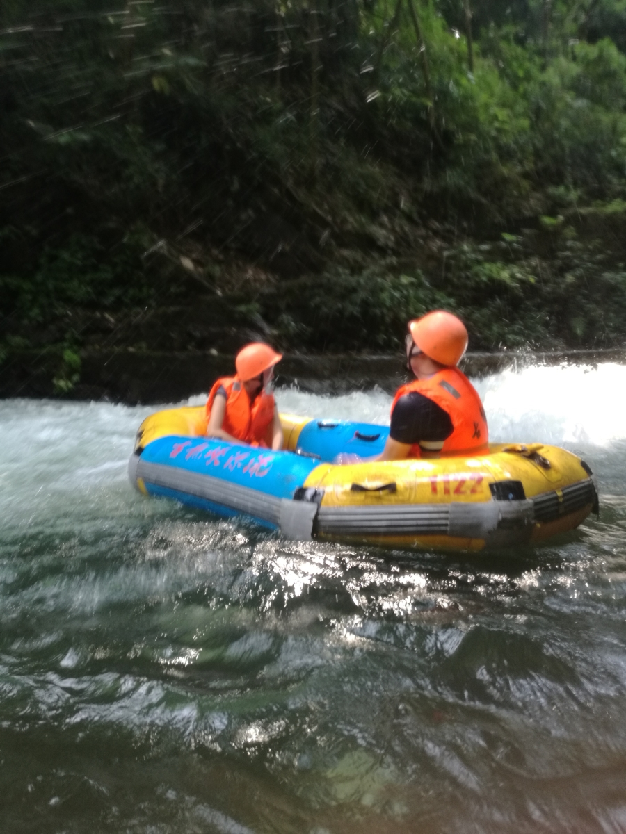 野炊结束之后,烈日高悬头顶,火热火热的。导游告诉我们,压轴大戏要上场了。家人们来到了清远的国家AAAA级旅游景区国际漂流赛场--------古龙峡漂流。这里人山人海,空气清新,见到清澈的流水,一股清爽的感觉顿时迎面扑来。
